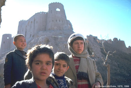 | Boys play beneath a castle in Herat in January 1978.