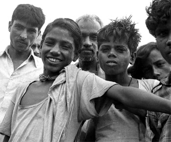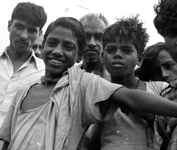 By Richard McGuire When I journeyed overland to India in 1977, I carried with me my first-ever single lens reflex (SLR) camera. It was a used Ricoh with screw mount lenses -- a 200 mm telephoto lens and a 35 mm wide angle, as well as a 50 mm normal lens. I'd been using simple cameras since the age of five, but this was my first real camera. I'd just taken a year of journalism in college, including a course in photo journalism. There, I'd fallen in love with photography, and spent many long hours after school in the darkroom processing and printing my own black and white pictures. I was determined to document the places and people I saw in my travels. I brought with me a number of Kodachrome colour slide films, which took up a large chunk of my travel budget. Unfortunately these were expensive, and it was virtually impossible to buy more in the Asian countries I visited. And of course, I'd underestimated my hunger for film. Often in my travels, I carried with me items to sell or trade. I'd brought one of the very early pocket calculators from duty free enclave Andorra, and in Kabul, Afghanistan I successfully traded it for 10 rolls of Ilford FP4 36-exposure black and white film. This allowed me to ration my valuable Kodachrome, and in many parts of India I shot black and white instead. Rather than carry rolls of exposed and unprocessed film with me, I often had these films processed along my route. I only got negatives and contact prints, no larger prints. I didn't learn until I returned to Canada months later that some of the shops did a poor job of developing the films, and many of the negatives were scratched and otherwise damaged. The results were often very grainy, and some of the developing times were clearly wrong. While I did get some nice prints, others I regarded as ruined pictures. Some 25 years later, photography was moving into the digital age. I purchased a Nikon Coolscan IV ED slide and negative scanner, and decided to scan my old black and white Indian pictures. I used Adobe Photoshop 7.0 to adjust and fix the digital images. In particular, its "healing brush" feature allowed me to digitally remove the scratches, and I was able to adjust for brightness and contrast and make other corrections. Despite these features, the restoration was still painstaking. The results are images I'm quite pleased with. While the Kodachrome was great for capturing the lush colourful landscapes of Nepal and Afghanistan, the black and white seemed better suited to capturing the gritty textures of India, its people, rich culture, and human poverty. The images on this website represent a small sample of the hundreds of black and white pictures I took in India. I hope you enjoy them. © Richard McGuire 2004 Please see Purchase Information if you are interested in purchasing these photos.