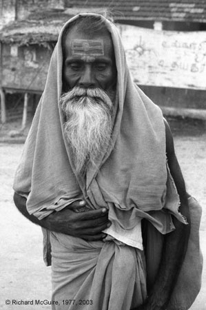 This holy man in the town of Rameswaram in the south of India has a look of serenity on his face. The temple town of Rameswaram is a centre of pilgrimage for Hindus, especially followers of Shiva and Vishnu.