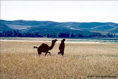 Camel on a Leash, Northwestern Afghanistan, 1977River valleys in desert northwestern Afghanistan often were cultivated. Passing through them, one was more likely to encounter signs of human and animal life. Camels, because of their ability to cope in desert climates, are commonly used as beasts of burden. © 1977, 2002 Richard McGuire |